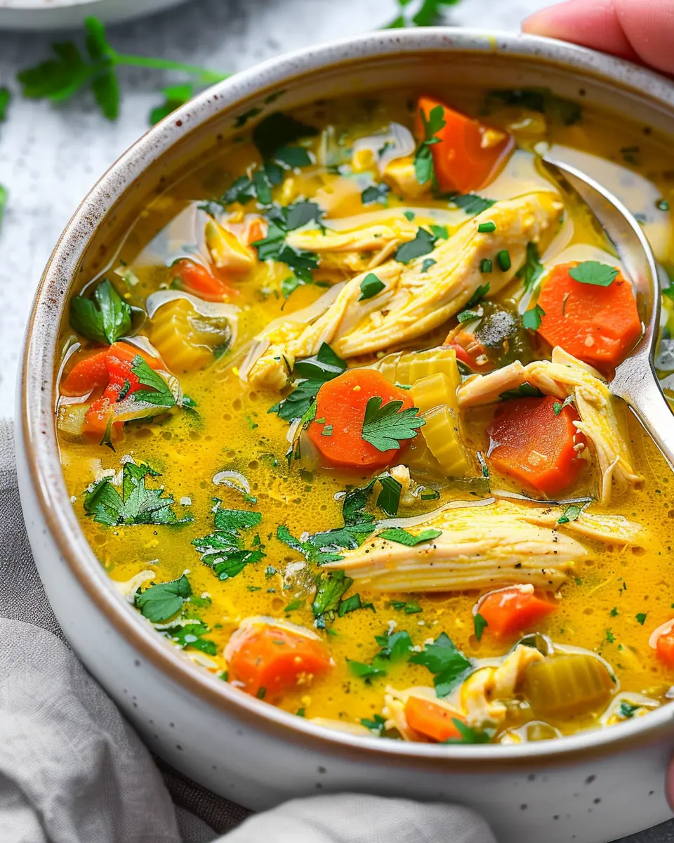 A delicious and nourishing soup that combines the health benefits of turmeric with tender chicken and fresh vegetables, perfect for soothing the soul.