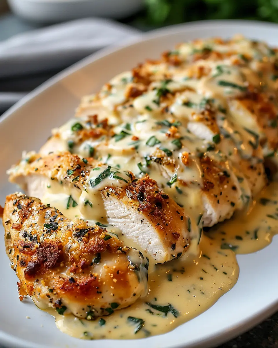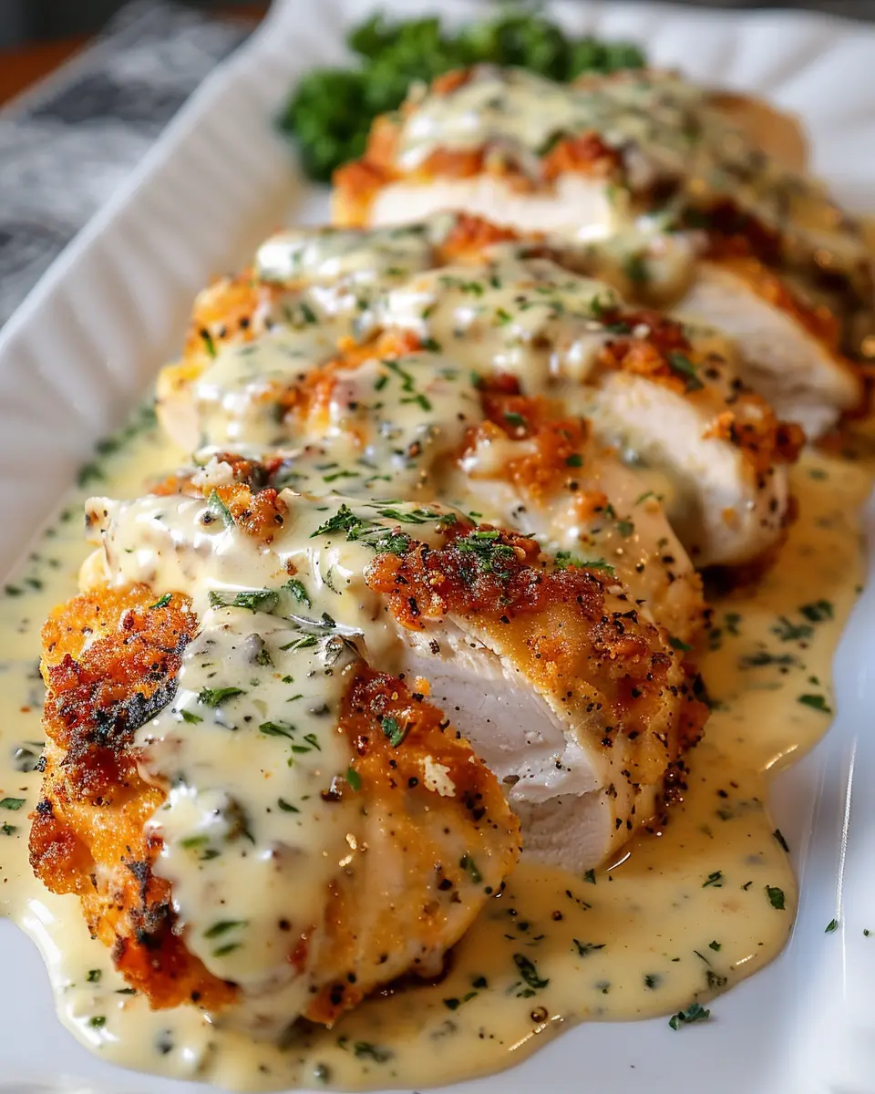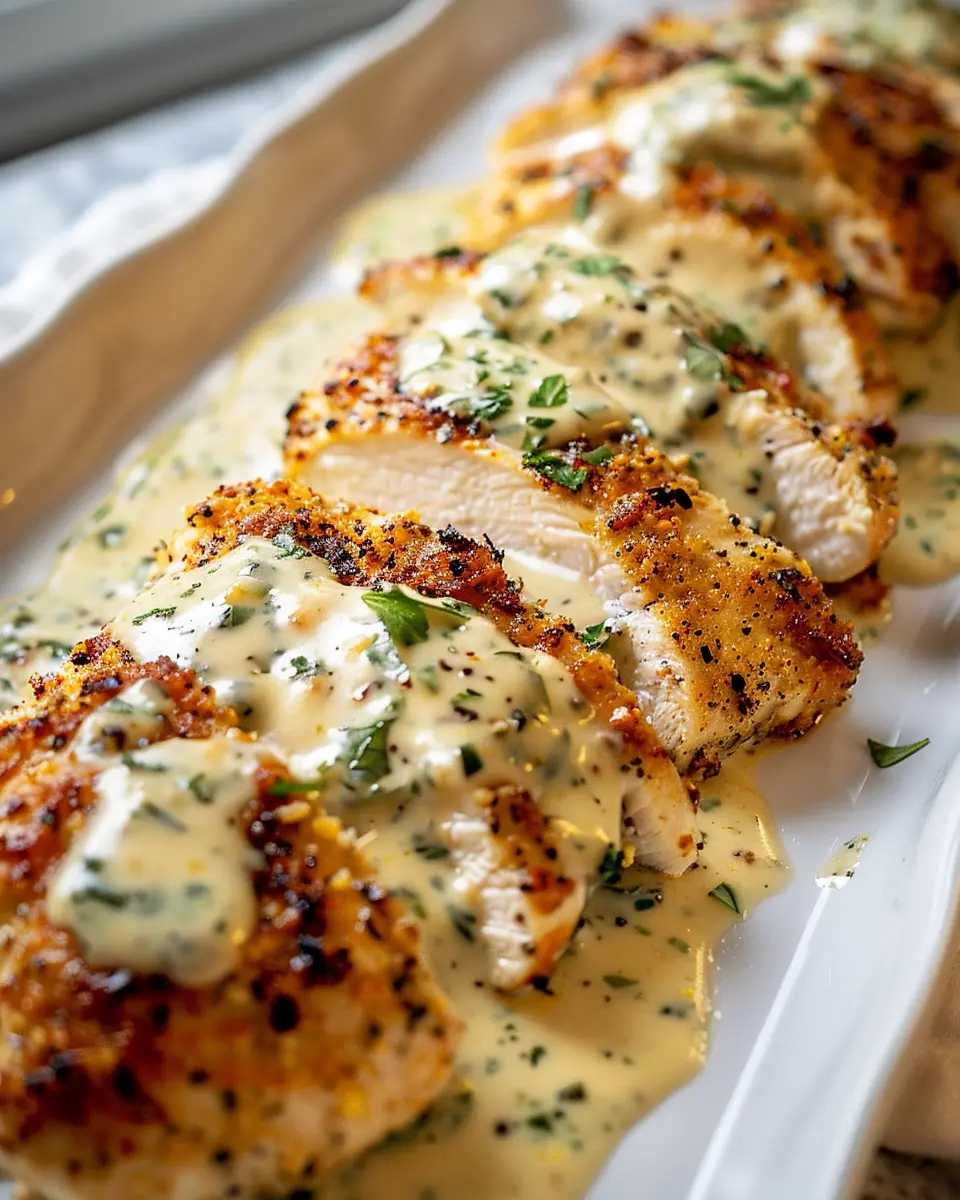 PrintBaked Caesar Chicken with Creamy Parmesan Sauce: Easy Indulgence