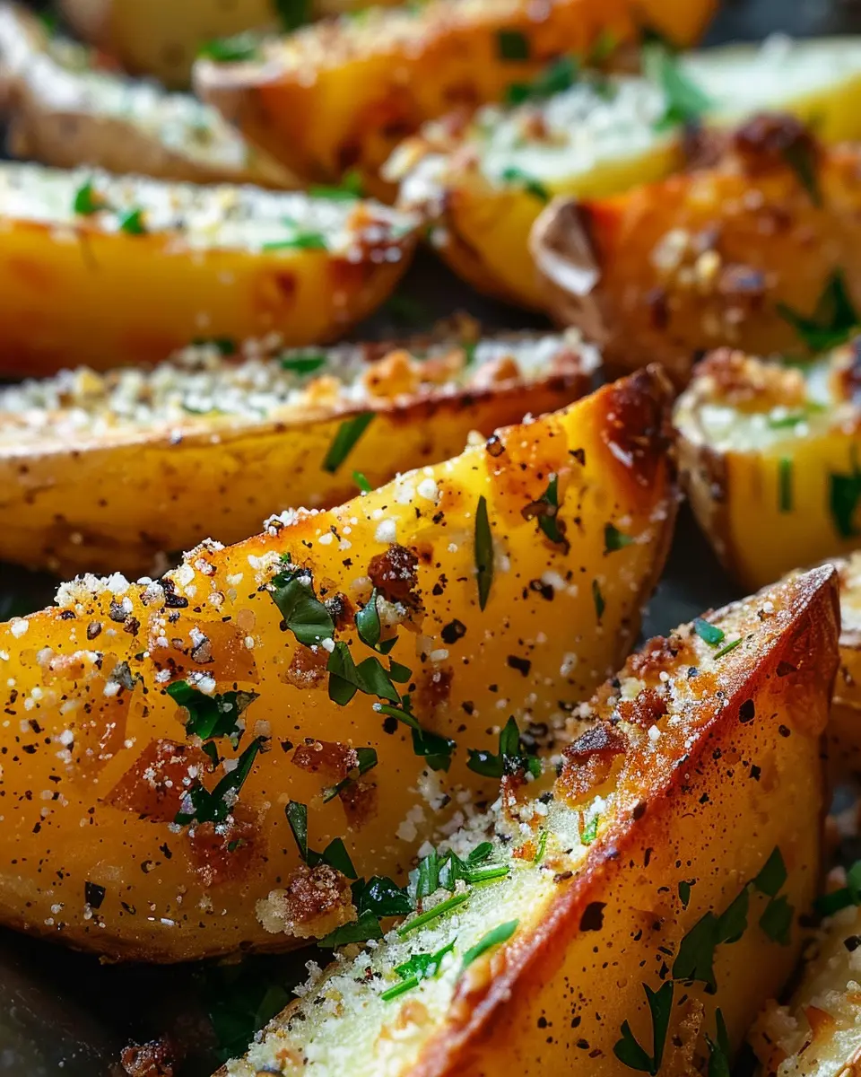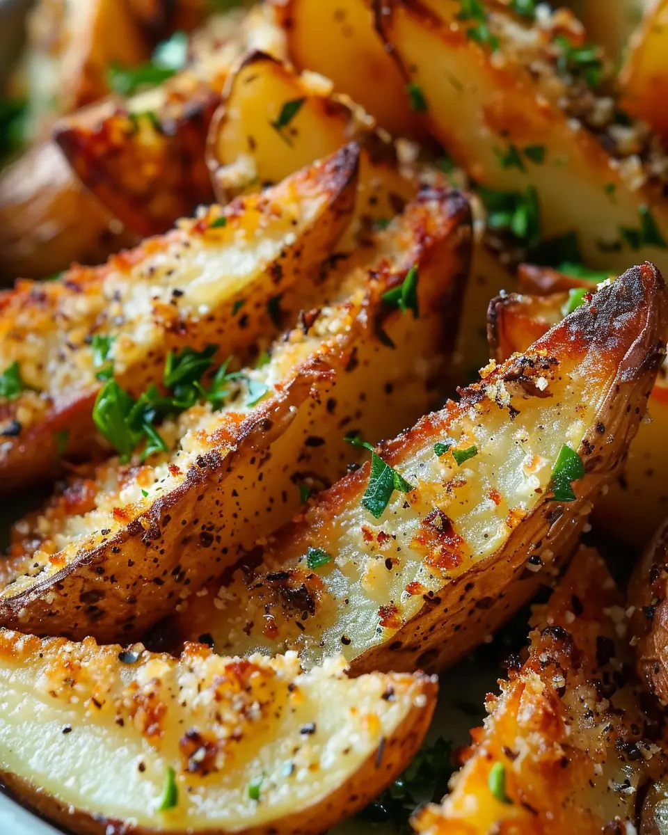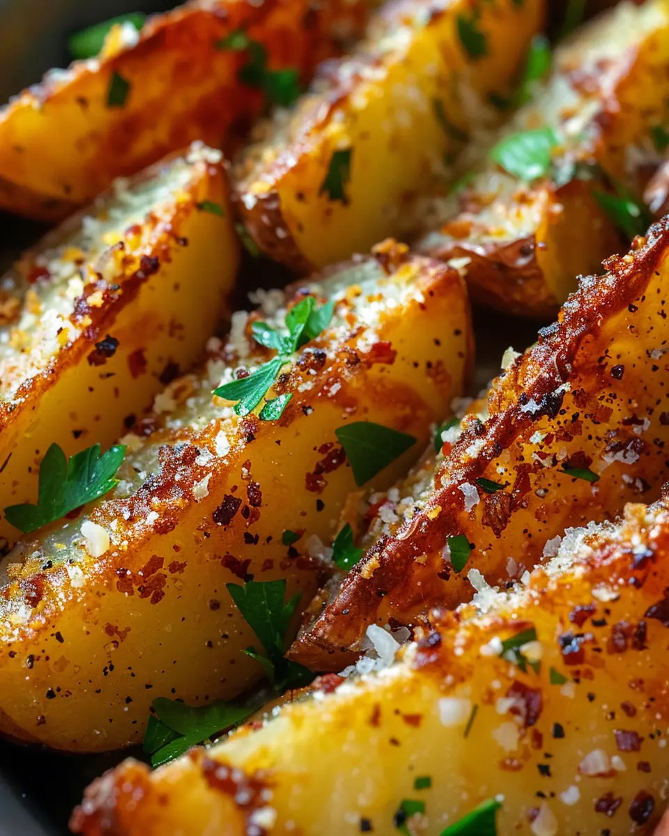 PrintBaked Garlic Parmesan Potato Wedges: Best Crispy Snack Idea