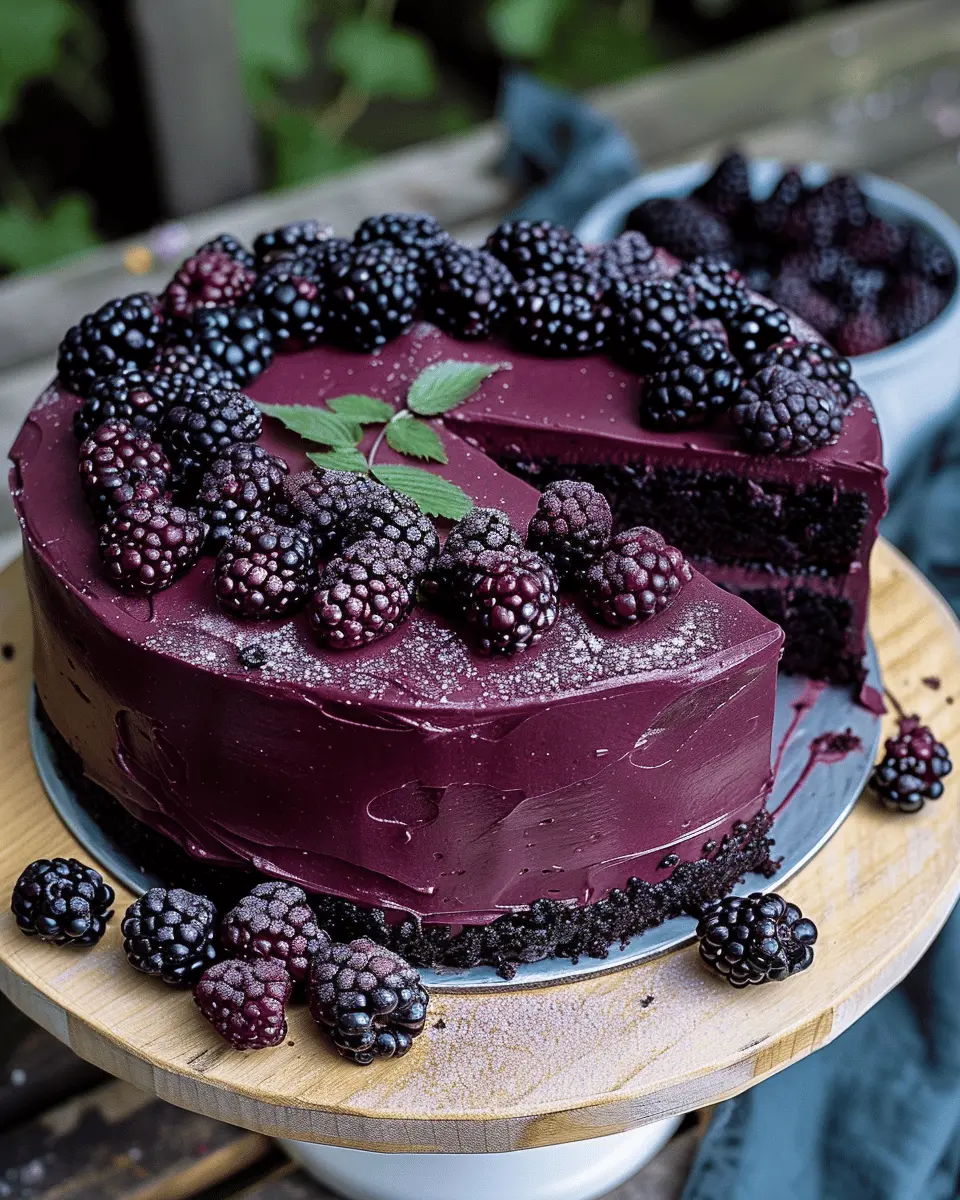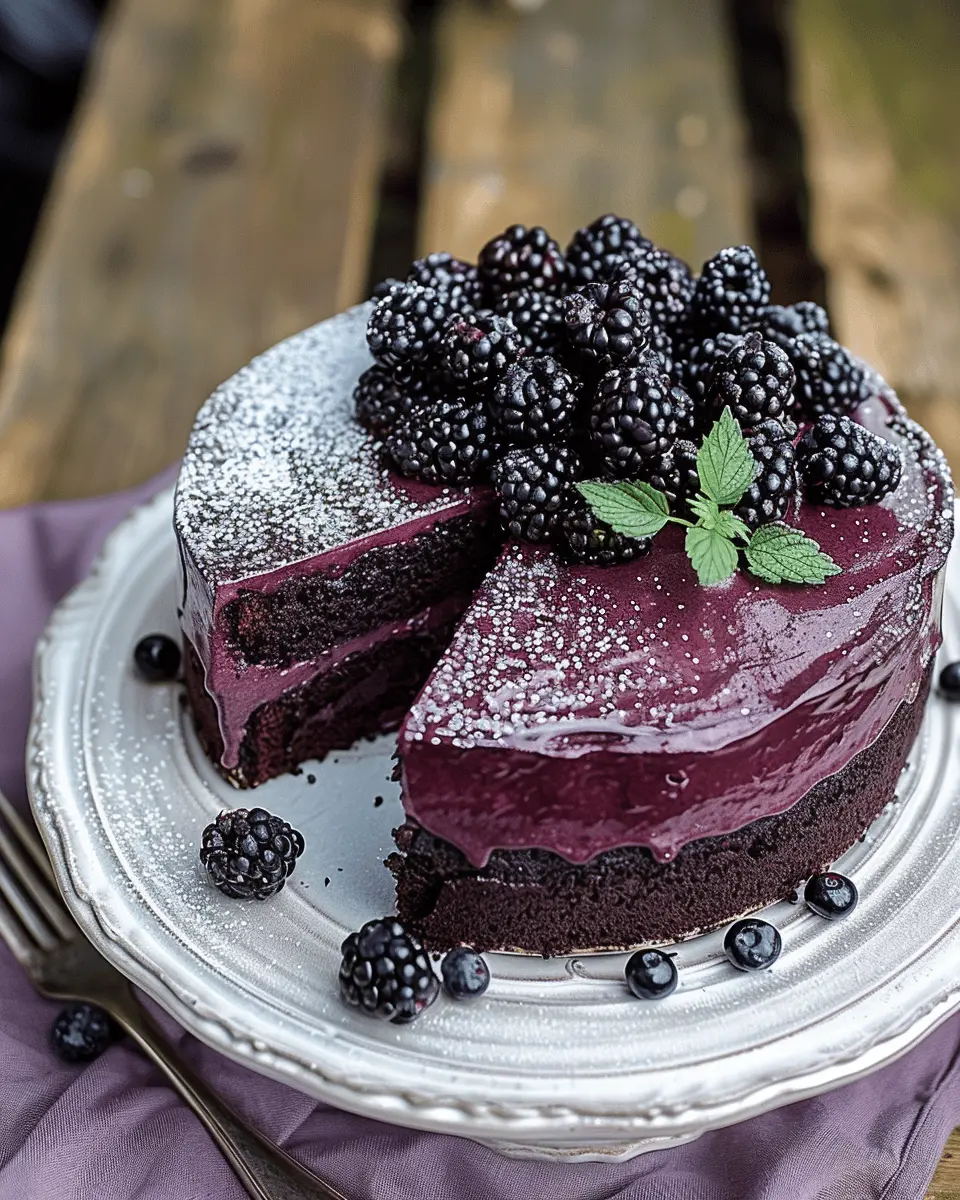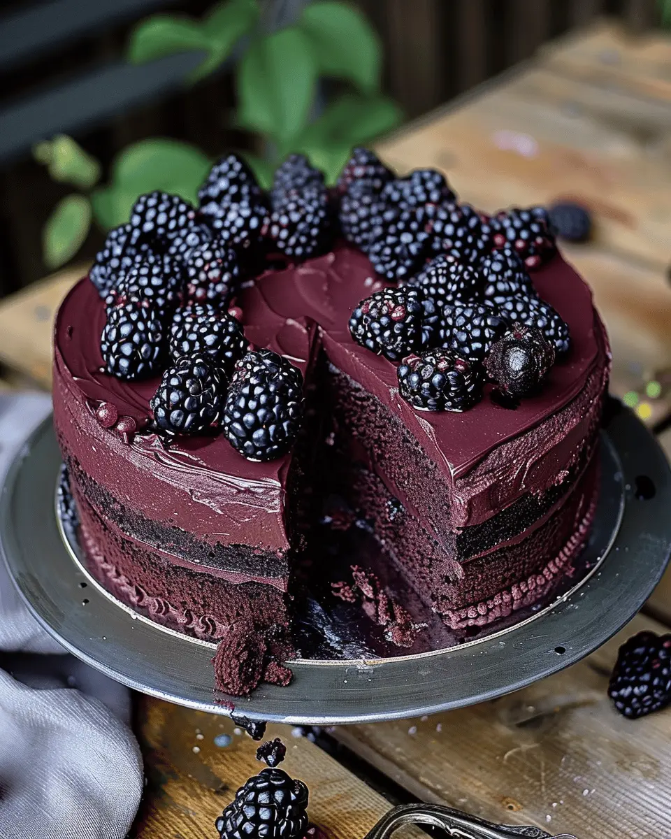 A rich and decadent cake that combines the flavors of blackberries with a velvety texture, perfect for impressing guests at any occasion.