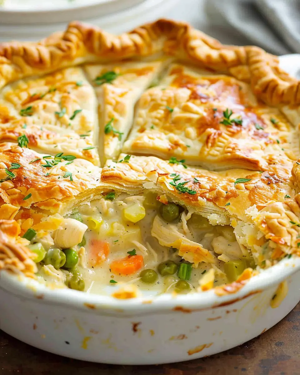 In conclusion, this chicken pot pie recipe is not just a meal; it’s a celebration of comfort food that brings warmth to any table. With its flaky crust, savory filling, and customizable ingredients, it’s no wonder this dish has become a family favorite. Whether using leftover chicken or experimenting with Turkey Bacon for a twist, the possibilities are endless.