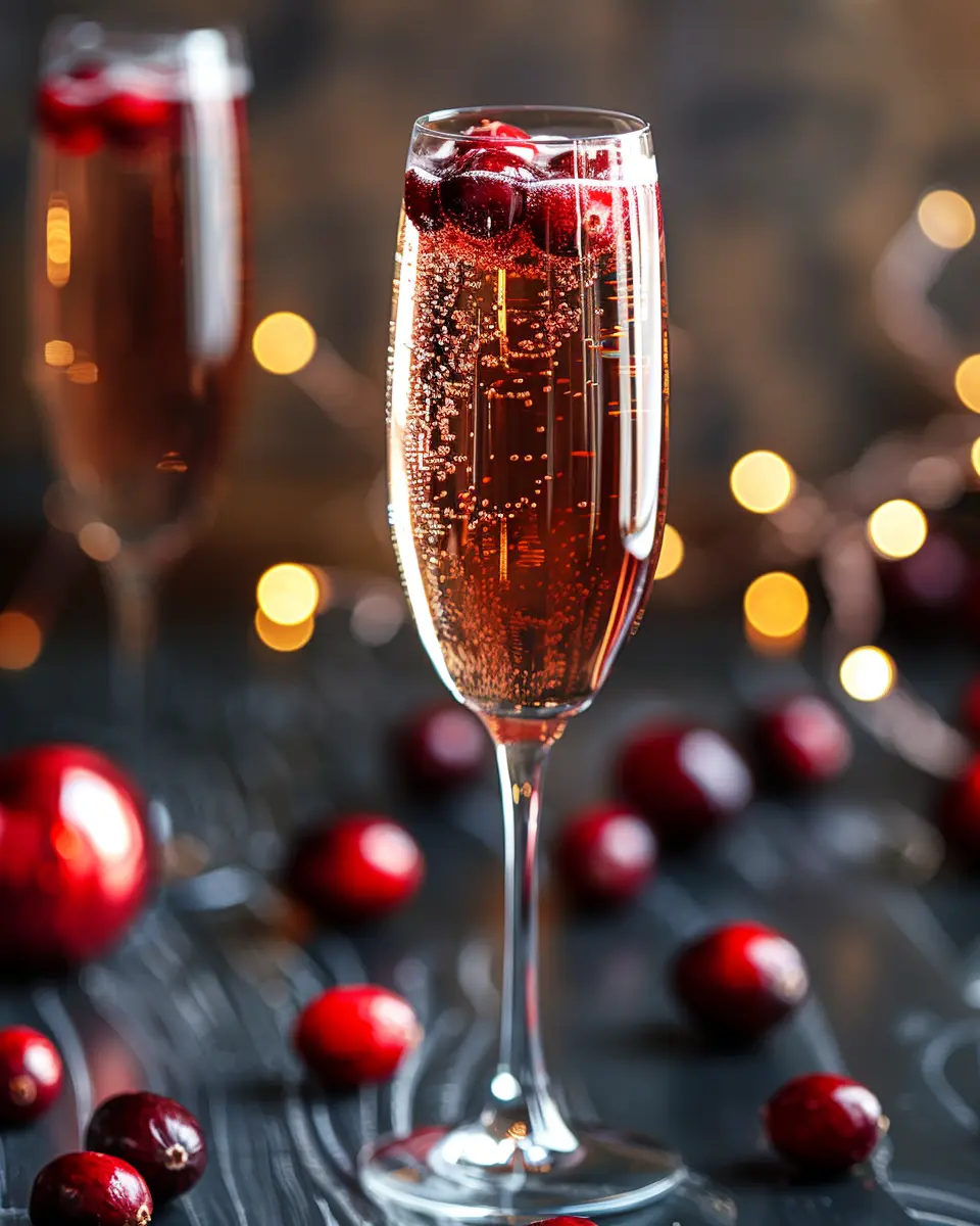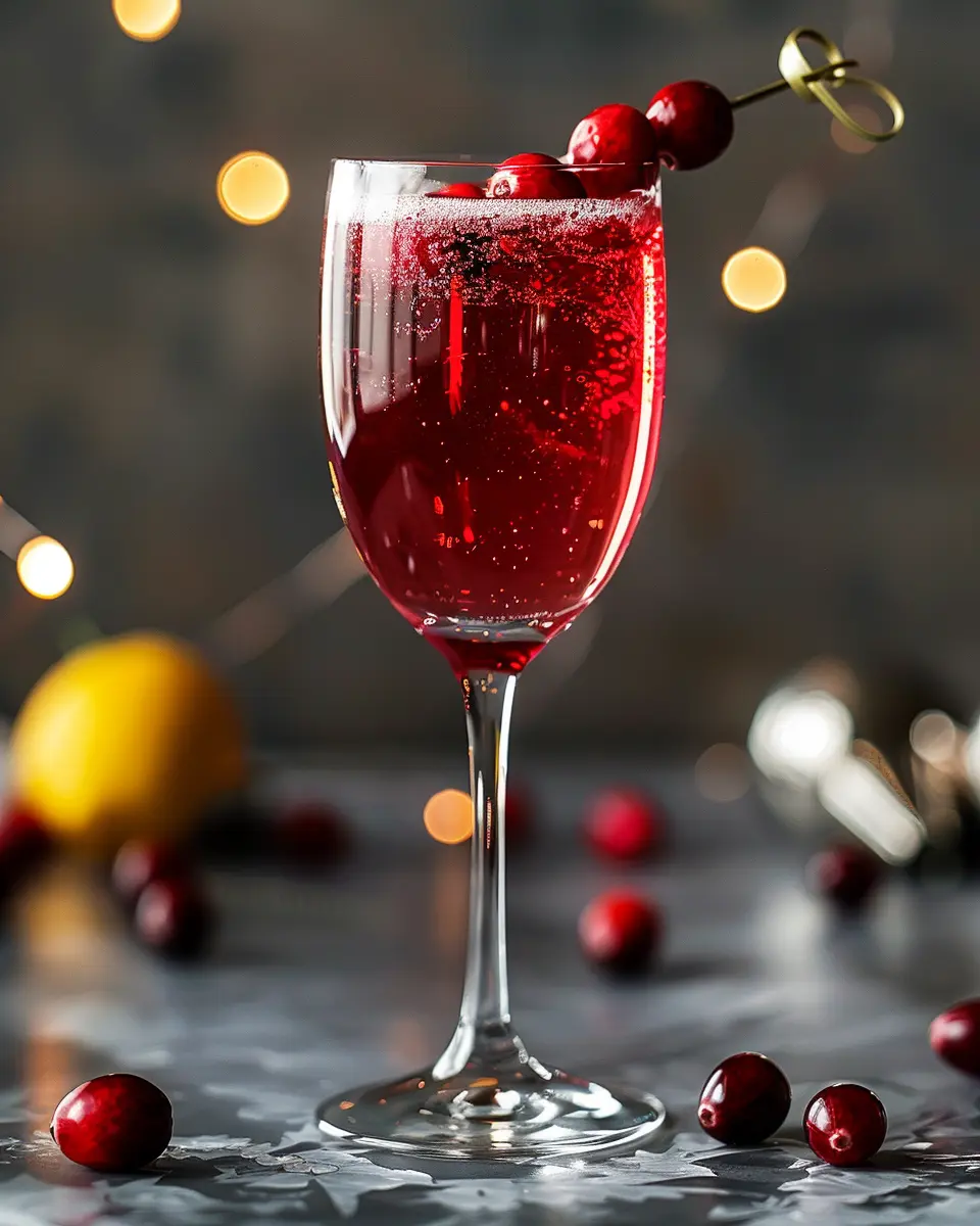 A delightful spin on the classic French 75 cocktail, incorporating the flavors of cranberry for a refreshing and festive drink.