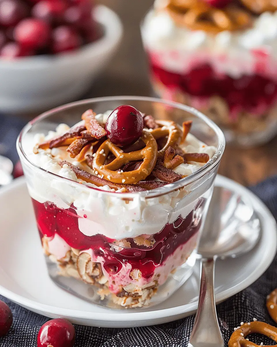 Absolutely! One of the great things about Cranberry Pretzel Salad is that you can prepare it a day or even a few days in advance. Simply assemble the pretzel crust and the creamy layers, then refrigerate it covered until you’re ready to serve. Just keep in mind that the longer it sits, the more the pretzel crust may soften. If you prefer a crunchy texture, consider adding the crushed pretzels just before serving.