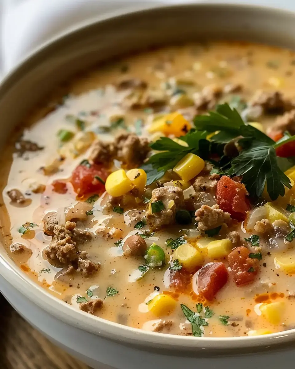 If you’re looking for a twist with a Southwest flair, this variation is for you. Instead of the traditional proteins, utilize shredded chicken and introduce roasted jalapeños and corn. To really kick things up a notch, use lime juice and fresh cilantro for brightness. This version of the creamy cowboy soup recipe captures those warm, sun-soaked flavors reminiscent of a backyard fiesta. Paired with avocado slices or a scoop of sour cream, it makes for a satisfying meal.