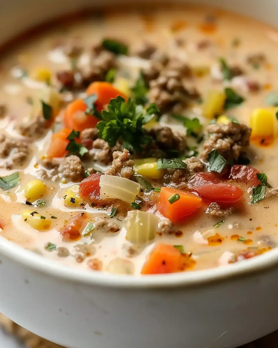 Enjoy a bowl of rich and hearty Creamy Cowboy Soup, loaded with flavors and the indulgence of turkey bacon. Perfect for chilly days, this recipe combines creamy textures with savory goodness.