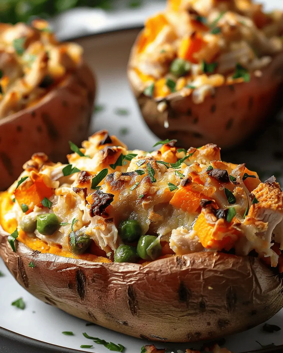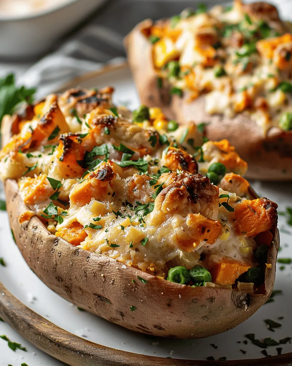 Serving suggestions for Creamy High-Protein Chicken Pot Pie Stuffed Sweet Potatoes