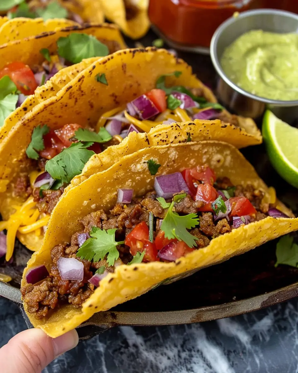 And there you have it! After following these straightforward steps, your crispy ground beef tacos will be ready to impress friends and family alike. Enjoy them with your favorite sides and drinks to complete your taco night experience! Happy cooking!