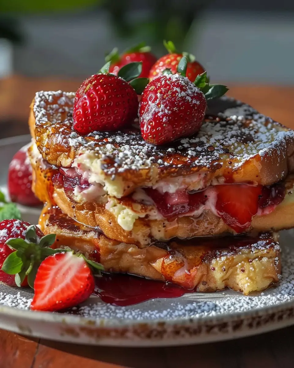PrintFluffy Strawberry Stuffed French Toast Recipe: A Sweet Delight