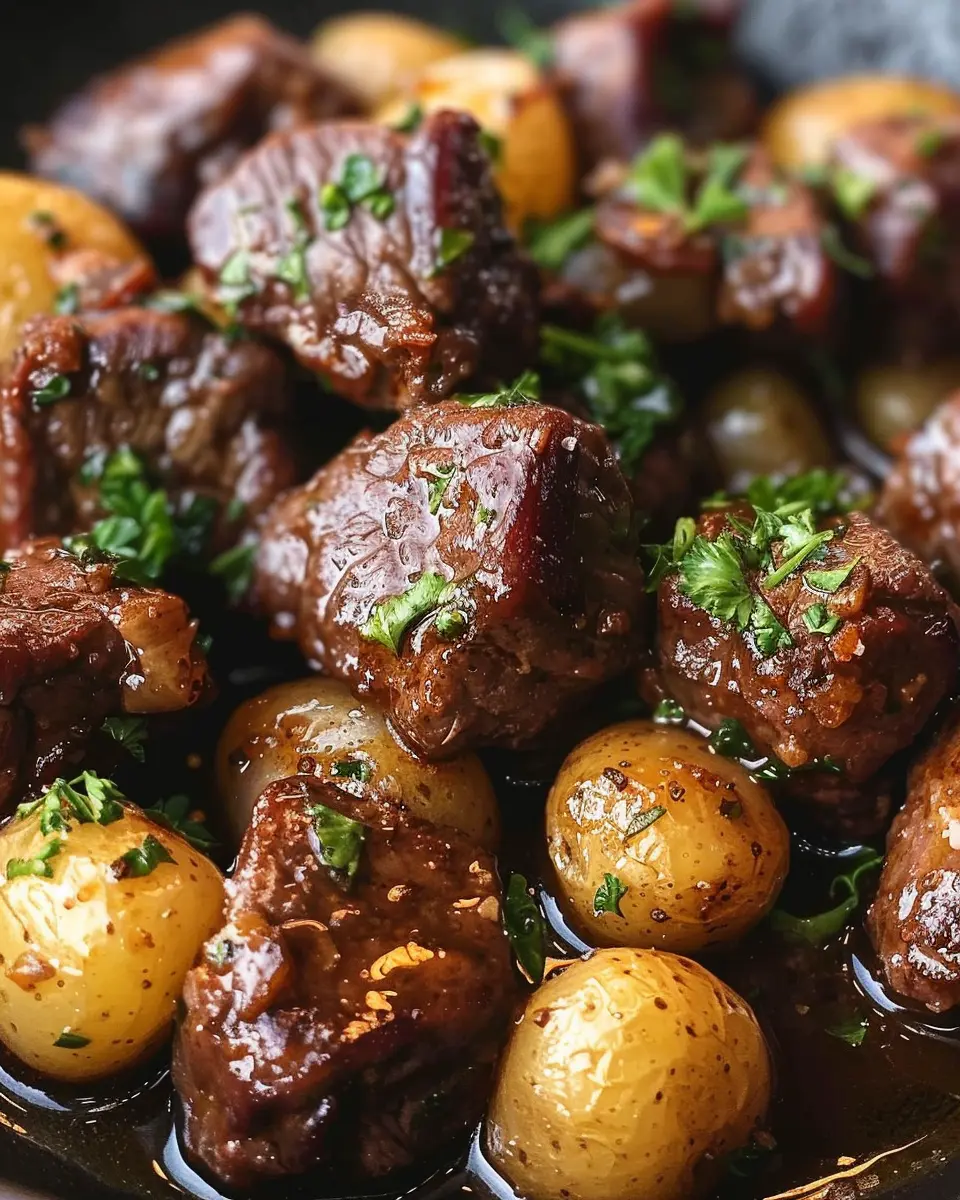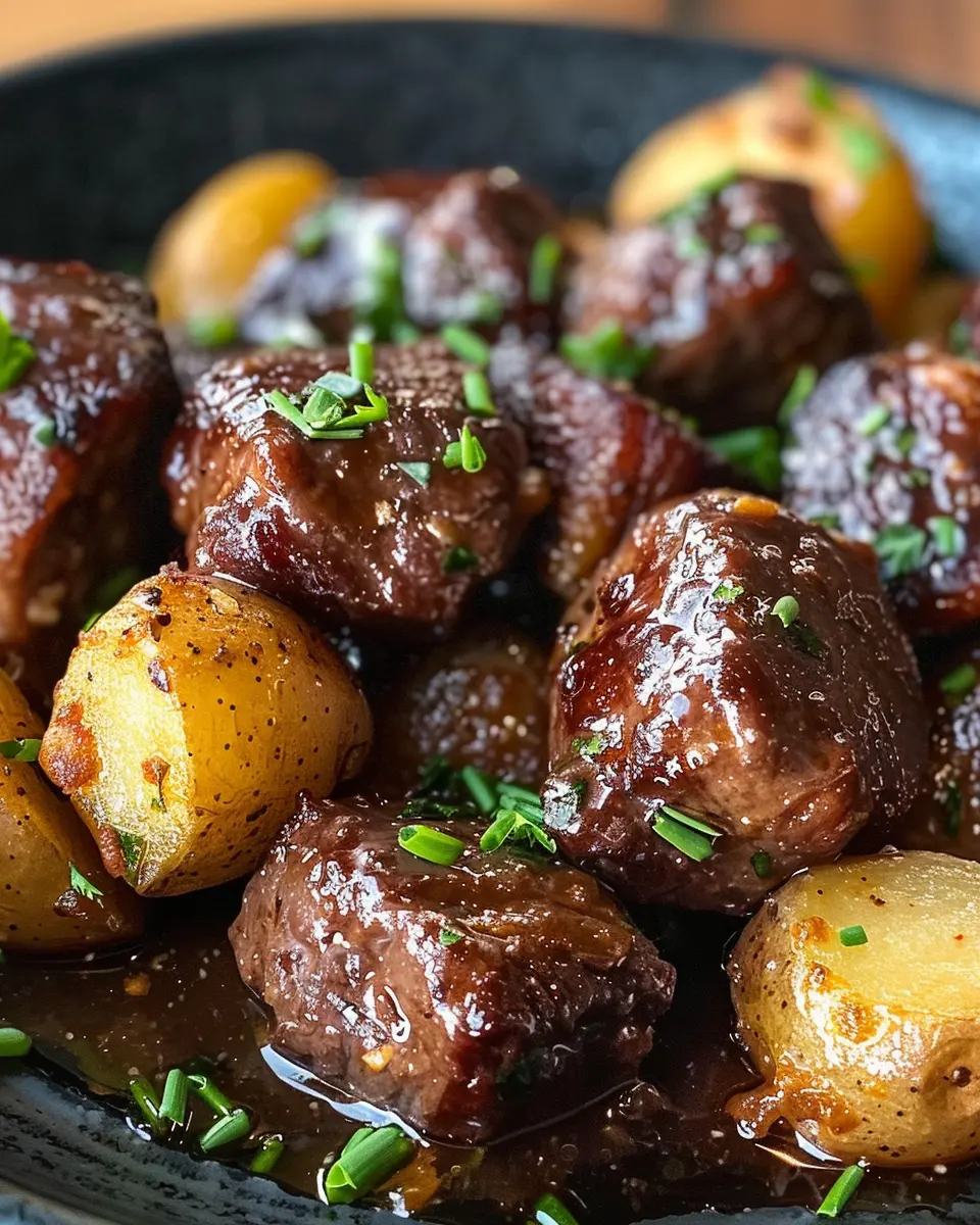 Keywords: Garlic Butter Beef Bites, Crispy Potatoes, Easy Comfort Food