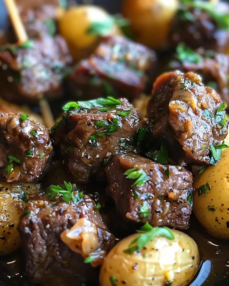 PrintGarlic Butter Beef Bites: Easy Comfort with Crispy Potatoes