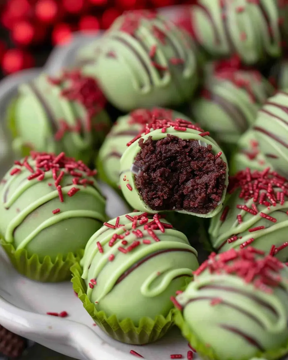 Delicious Grinch Oreo Balls made with Red Velvet Oreos for a festive treat.