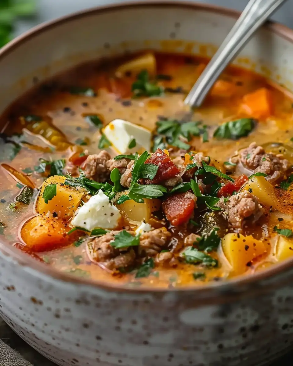 PrintHearty Keto Soup: Indulgent Turkey Bacon & Chicken Ham Delight