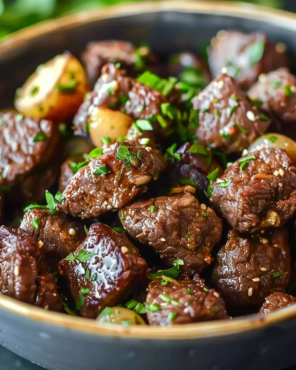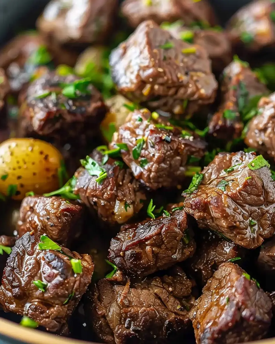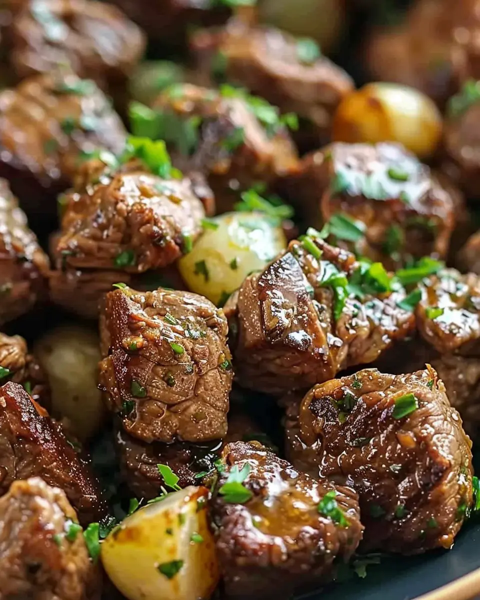 This sauce? Pure magic. It enhances the beef bites with garlicky goodness that you’ll want to drizzle over everything.