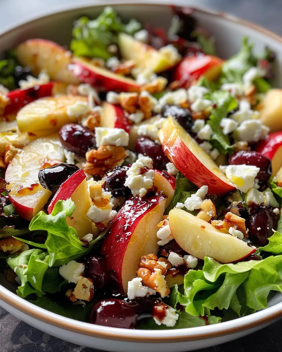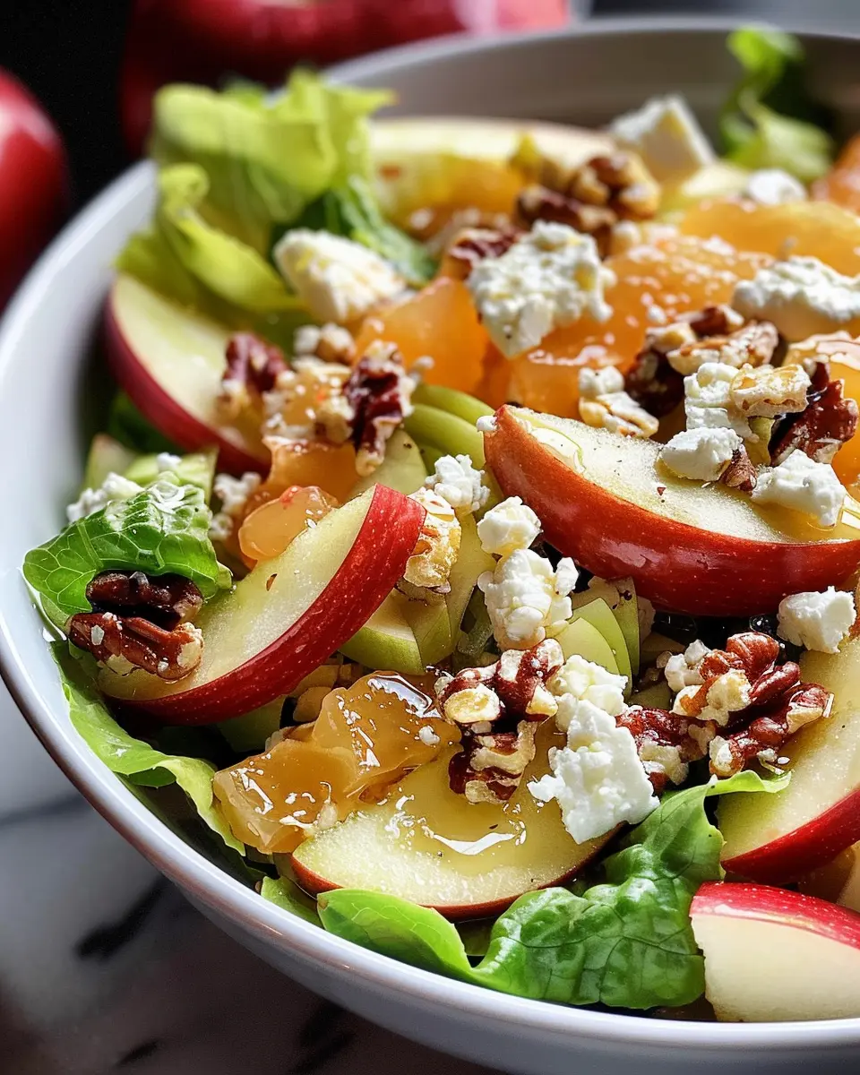 In fact, studies have shown that incorporating a variety of ingredients—like fruits and nuts—can actually enhance the satisfaction and enjoyment derived from meals (source: Harvard Health). So why not take a moment to savor this Honeycrisp Apple Feta Salad? It’s more than just food; it’s a celebration of flavors that can fit seamlessly into your lifestyle. Explore the recipe below and discover how easy it is to create a meal that’s both nourishing and indulgently tasty!