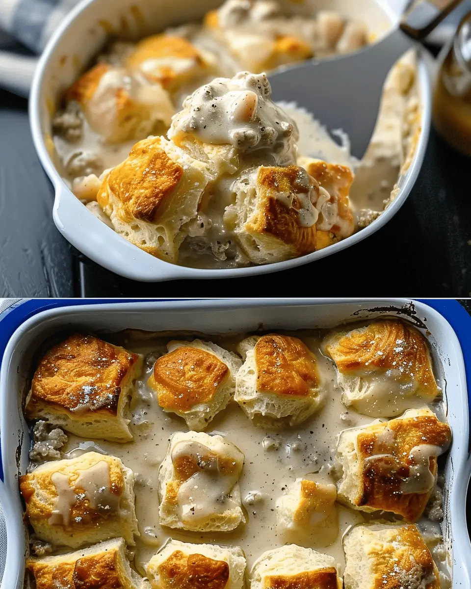 Keywords: Lazy Biscuits & Gravy Breakfast Casserole