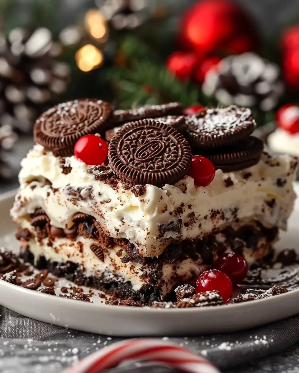 No-Bake Christmas Oreo Lasagna is a delicious and easy dessert that brings festive joy to your table without the need for baking.