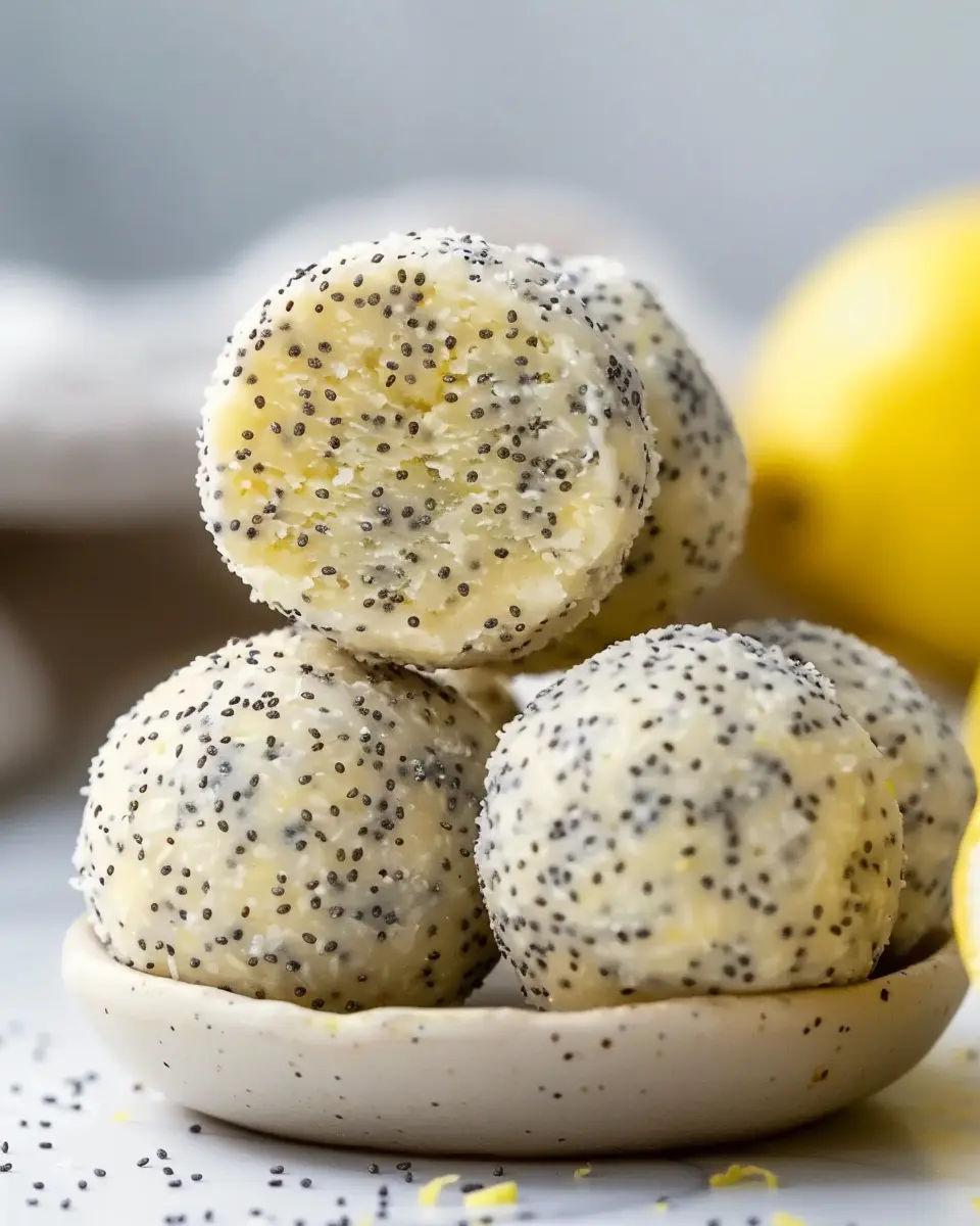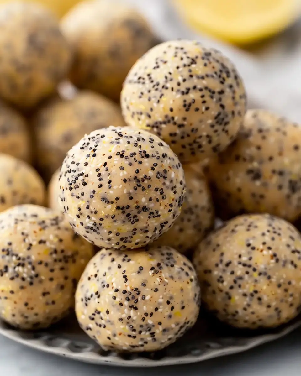 Keywords: No-Bake Lemon Poppyseed Protein Balls, easy snack, energizing recipe