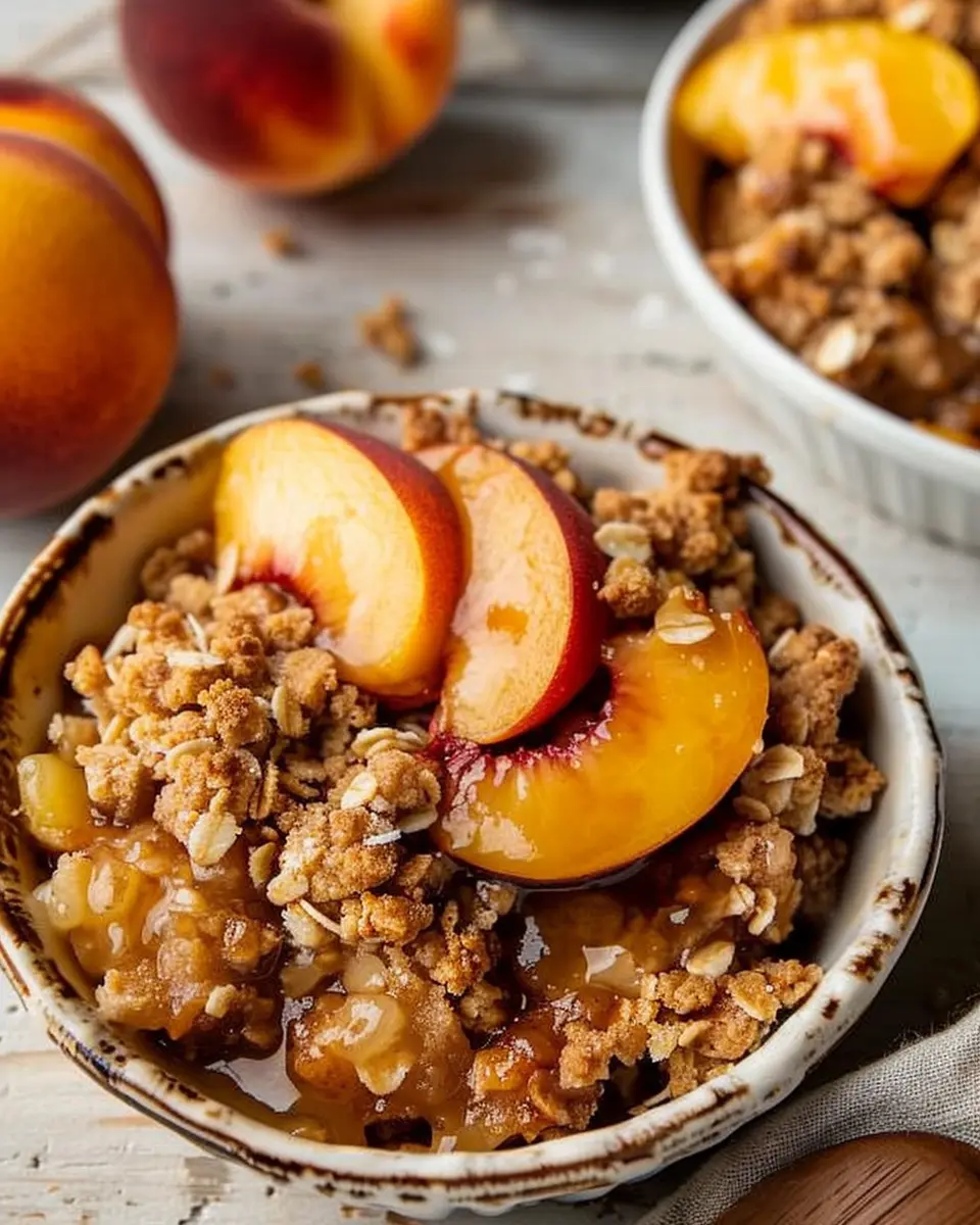 A deliciously simple peach crisp recipe, combining juicy peaches and a crunchy topping for a perfect dessert.