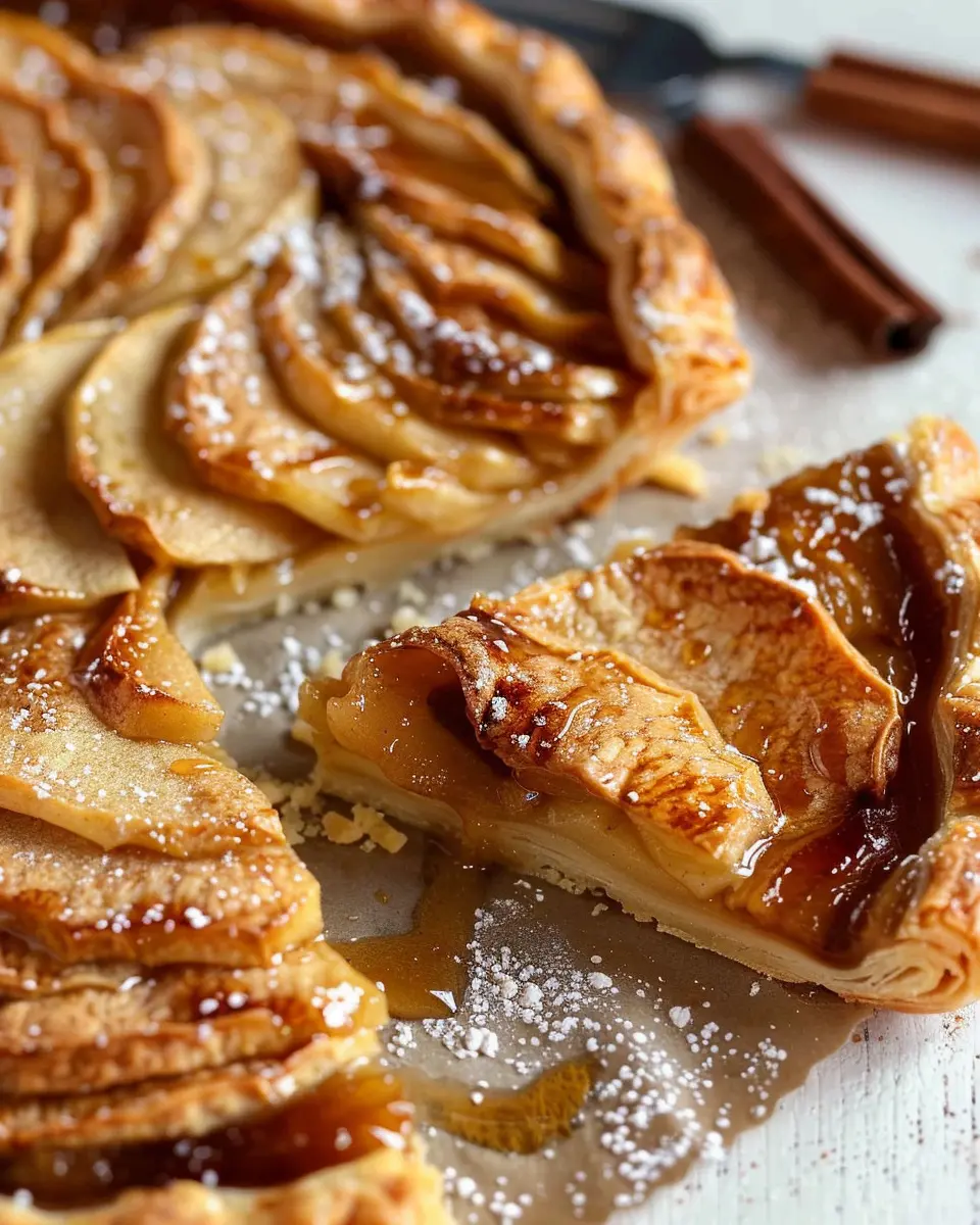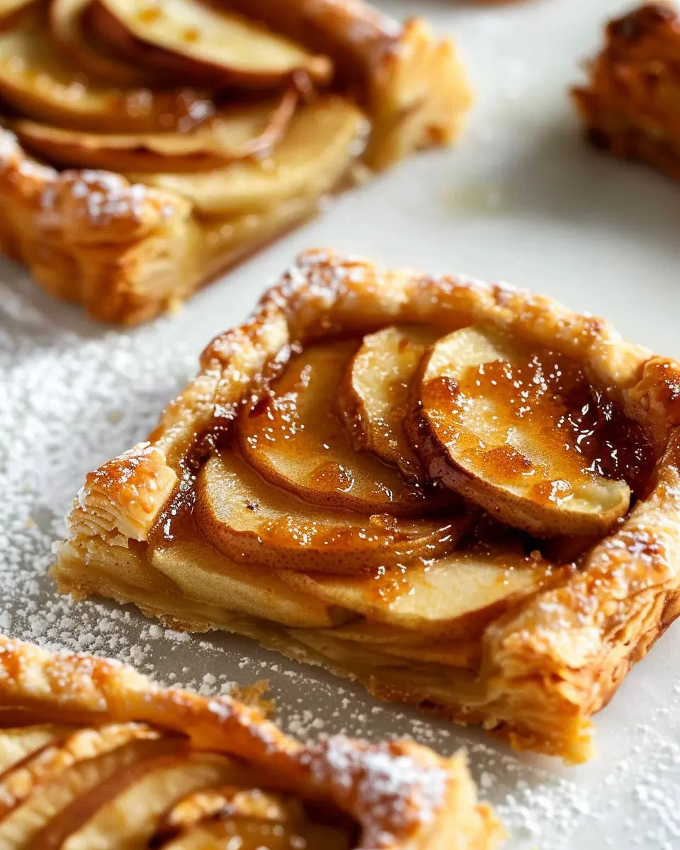 A delightful dessert featuring flaky puff pastry and sweet apples.