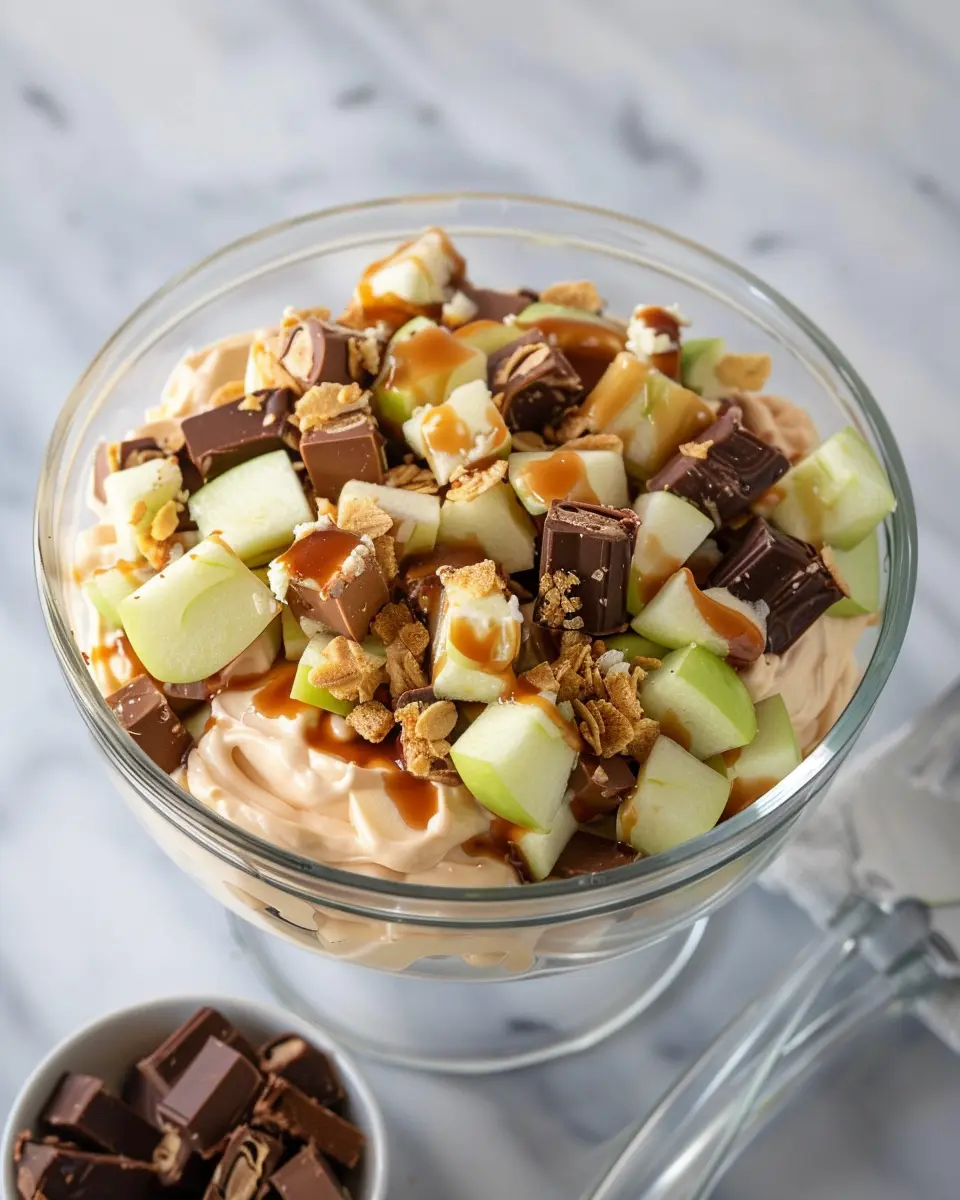 In just a few simple steps, you’ve created a dessert salad that’s sure to impress! Whether it’s for a dessert table or just a casual evening treat, your Snickers Apple Salad is bound to be a hit. Enjoy every bite and maybe even consider sharing the recipe with friends. After all, great food is meant to be shared!