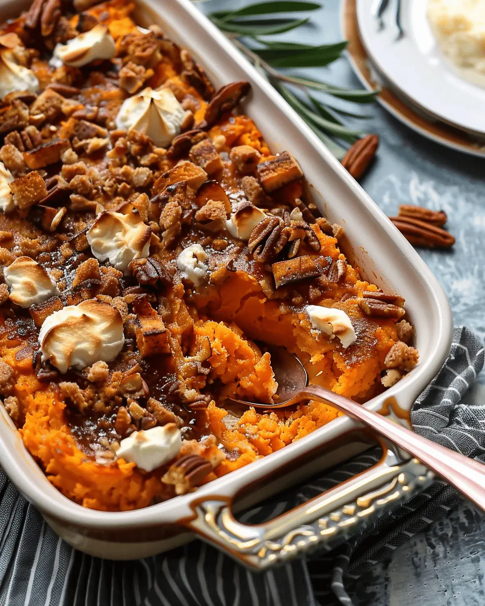 While making this dish, you’re not just cooking; you’re crafting memories. Picture yourself peeling sweet potatoes, stirring in warm maple syrup, and toasting the pecans that will crown your casserole. Each step is a reminder of how food brings people together, often becoming the centerpiece of laughter and storytelling.
