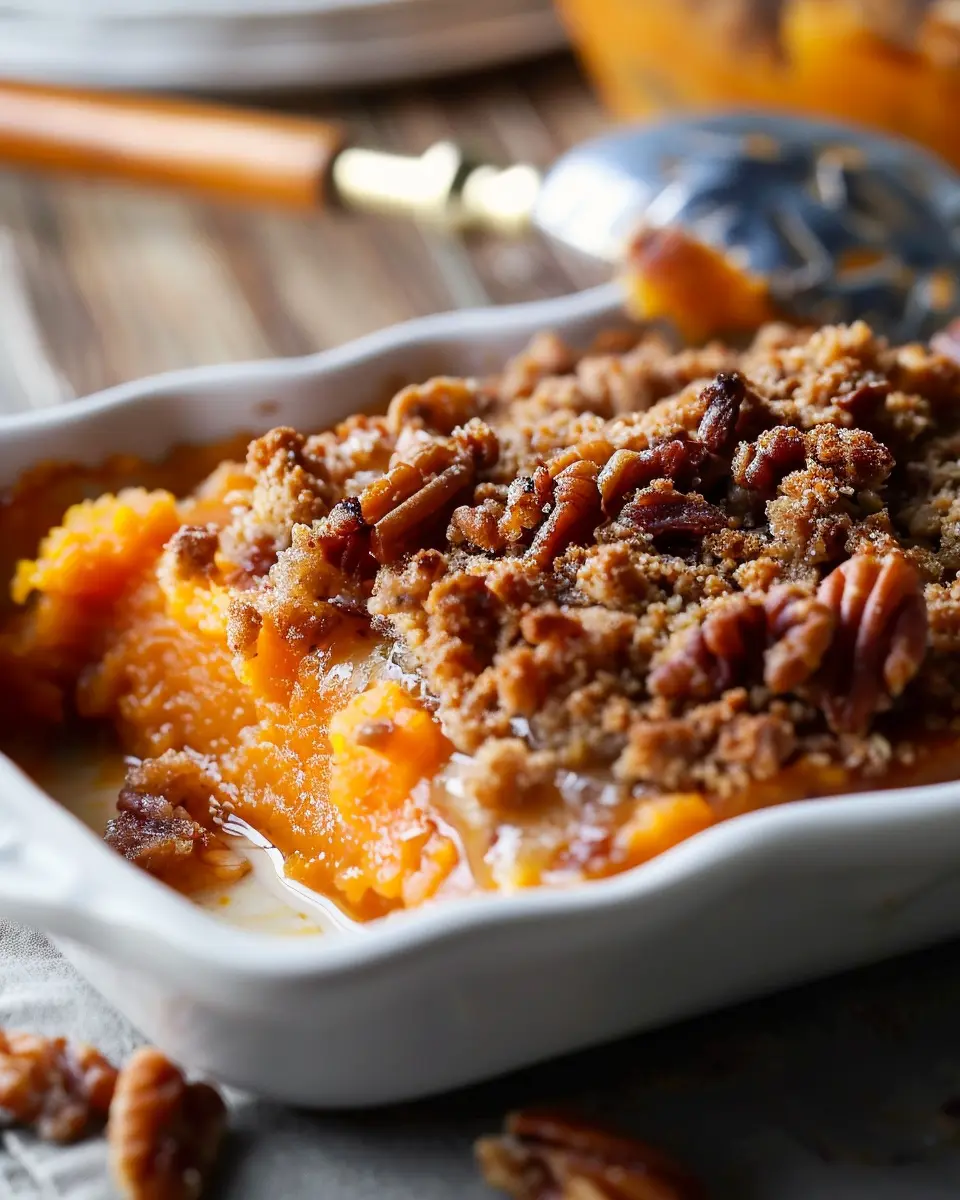 For those with a sweet tooth, consider adding mini marshmallows on top of your casserole before baking. As they melt, they create a delightful, gooey layer that contrasts beautifully with the creamy, spiced sweet potatoes. The subtle caramelization of the marshmallows adds an extra depth of flavor. If you’re feeling adventurous, you can also mix in some crunchy pecans or walnuts for added texture and a nutty twist.