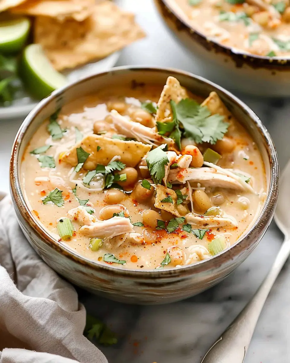 Enjoy a delicious bowl of White Chicken Chili made easy with the perfect blend of flavors and textures.
